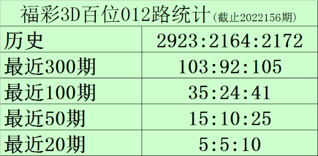 百位推荐:百位最近20期号码012路比为5:5:10,目前0路号码遗漏6期,1路号码遗漏5期,2路号码遗漏0期,另外0-9号码遗漏期数分别为: