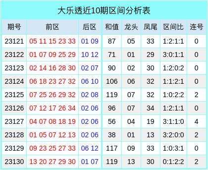 连码分析:上期前区开出连号组合29,30,在最近10期开奖中,有4期奖号包含了连码组合,连码的出现率较低。预计本期不会出现连号。