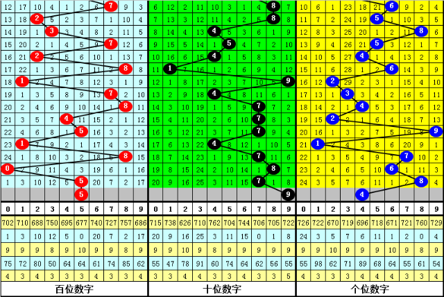 一、在下期开奖中,百位号码奇偶比为6:1,大小比为5:2,012路比为1:4:2,本期百位注意号码:4、5、8,胆码关注奇数:5。
