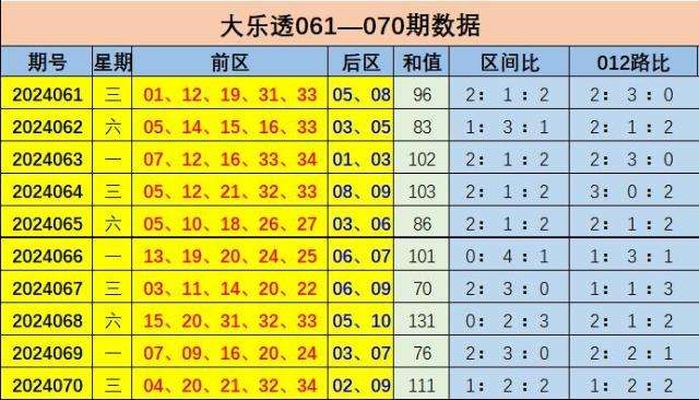 上期前区三区比为1:2:2,一区(1-12)开出1个号码,二区(13-24)开出2个号码,三区(25-35)开出2个号码;前区近10期三区号码比为14:21:15,1区出号较冷,2区出号较热,3区出号较温;综合分析推荐本期区间比为2:1:2。