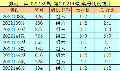 开奖回顾:排列三第2022147期奖号为:196,号码012路比为2:1:0。
