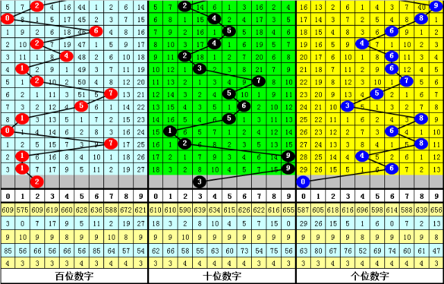 断档分析:上期奖号2路号码断档,0路号码表现较热。最近10期012路断档次数分别为4次、1次、4次,其中0路、2断档次数较多,1路断档次数较少,本期注意1路号码断档,防0路号码转热。