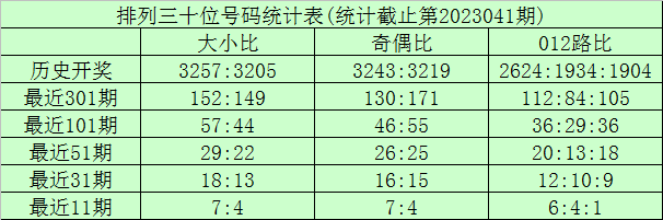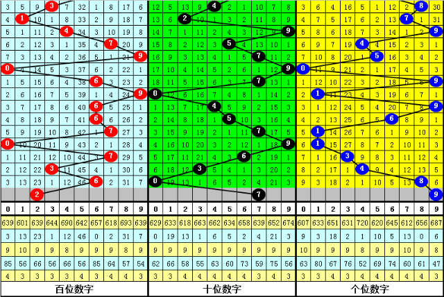 在连续11期奖号中,该位012路比为6:4:1,2路号码较少,目前012路号码遗漏期数分别是:0期、4期和5期,本期预计出现1路奖号。