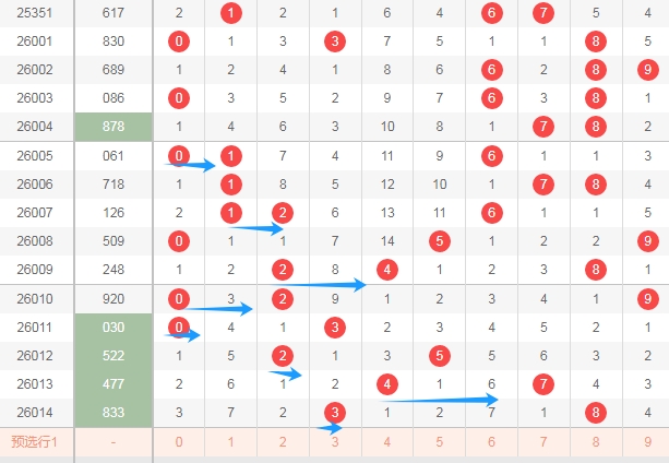 那么根据上面的分析,体彩排列三第2026015期可以得到这些数据: