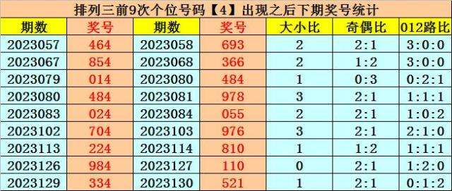 个位号码:上期奖号为小号、偶数、1路号码:4,历史上个位号码4共开出732期,前一次出现在第2023129期,上期遗漏3期再出。