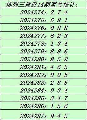 上期回顾:排列三第2024287期奖号:945。和值18,跨度5。