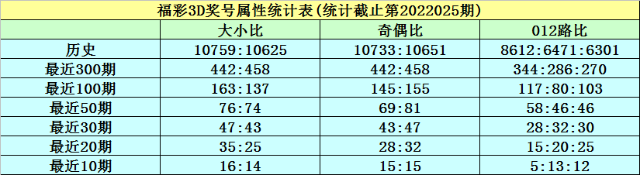 开奖回顾:福彩3D第2022025期奖号为579,其中奖号大小比为3:0,奇偶比为3:0,012路比为1:1:1,和值为21,跨度为4。