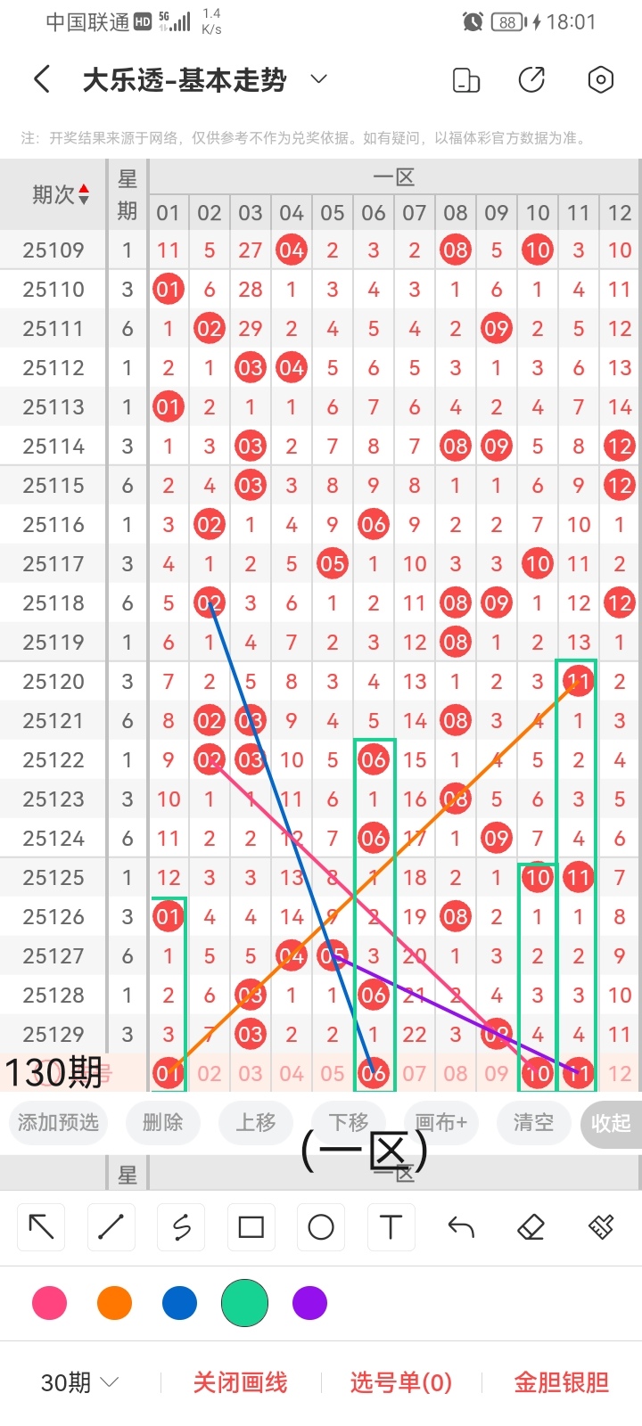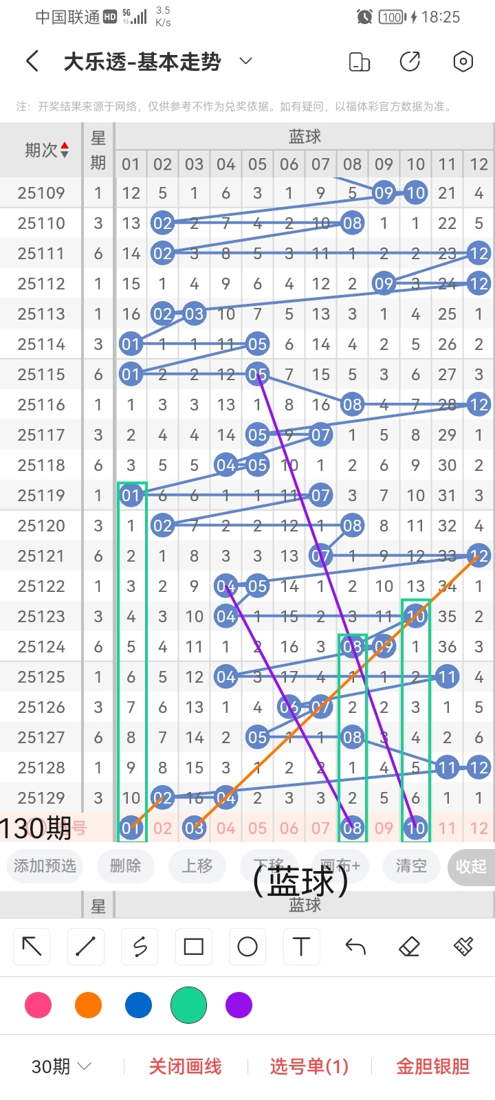 通过以上对上期的简单回顾,下面进入大乐透第2025130期(下面简称本期)的选号分析: