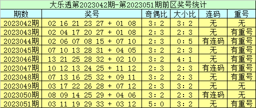 大乐透第2023052期前区奖号分析: