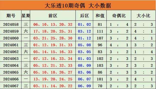 奇偶比分析:上期奇偶比2:3,近10期奇偶总比值为26:24,近3期奇偶总比值为7:8,偶数开出率高,综合分析,本期预计偶数多开出,推荐奇偶比2:3。