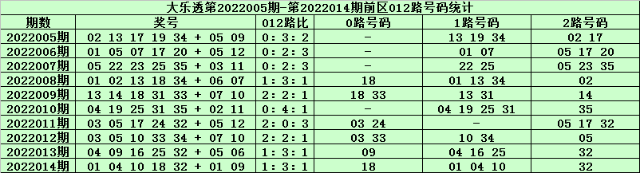 体彩大乐透第2022015期前区奖号012路分析: