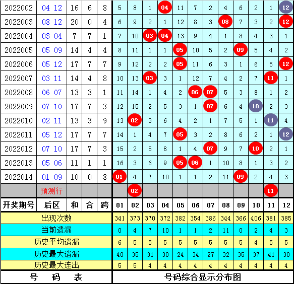 后区分析:后区上期开出奖号01+09,为1路号+0路号,最近10期后区号码012路比为7:6:7,其中号码01出现3个,号码03、04出现2个,号码02、05出现1个,号码06、07、08、09、10、11、12没有出现。本期看好后区在02、03、06、09、10、11之中落号。