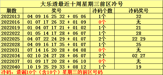 第2022039期2路三号球,其下期前区奖号为:10、19、25、29、33,分别遗漏:5期、3期、16期、14期、6期。