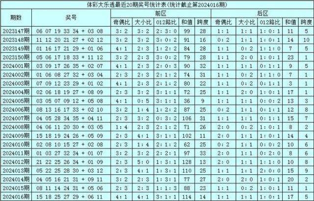 其中前区奖号大小比为50:50,012比为38:30:32,奇偶比为55:45,和值出现范围在36-128区间,跨度出现范围在9-33区段。
