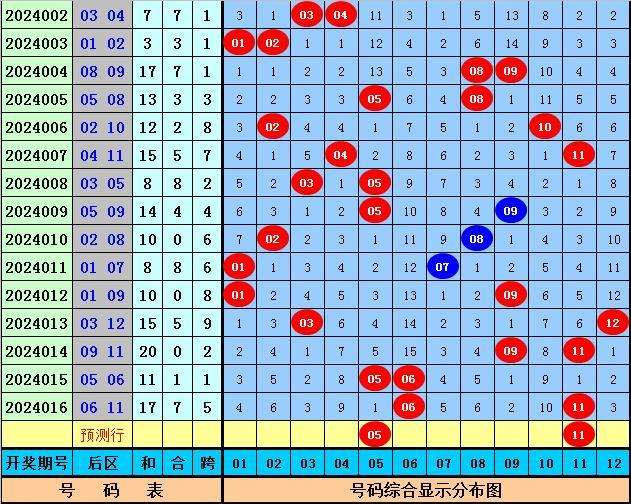 马哥第2024017期大乐透后区五码参考:01 03 05 06 11