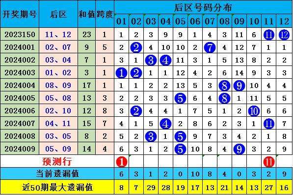 上期开出奇奇组合05 09,近50期奇偶形态:奇奇组合开出6次,奇偶组合开出17次,偶奇组合开出11次,偶偶组合开出16次。其中,奇偶、偶偶组合开出率较高。综合分析,本期后区单挑推荐01 11。