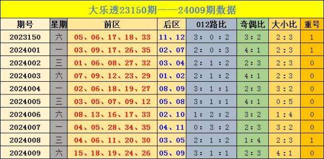 大乐透第2024009期开奖号码: 15 18 19 24 26+05 09。前区号码大小比为4:1,012路比为3:1:1,奇偶比为2:3,开出0枚重号。