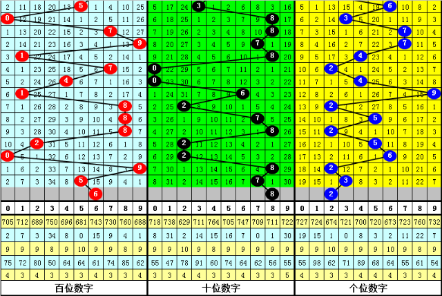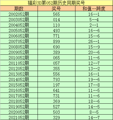 福彩3D上期奖号为573,去年同期与今年同期前20期奖号对比。
