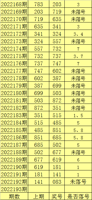 结合其它参数来看,福彩3D第2022193两码关注17、19重点关注17,独胆看好1。