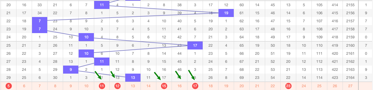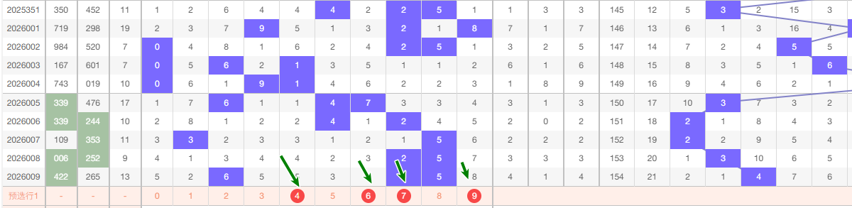 上期跨度4跨 1路跨 从上图看 本期主4769防1跨 供大家参考