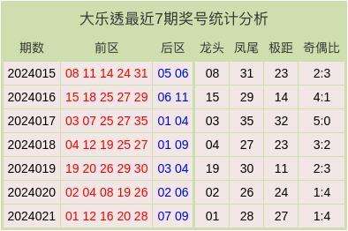 上期大乐透的开奖号码中,首尾组合为01+28,极距为27,奇偶比为1:4。