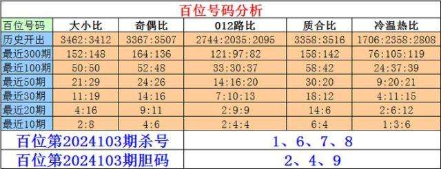 排列三百位第2024103期杀号:1、6、7、8