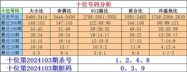 近期十位奇数出现较少,最近3期连出,明显转热,本期看好再出奇数;该位温冷号码近期出现较少,最近5期连续开出温冷号码,本期防温冷号码继续回补。十位杀号:1248,胆码关注:039。