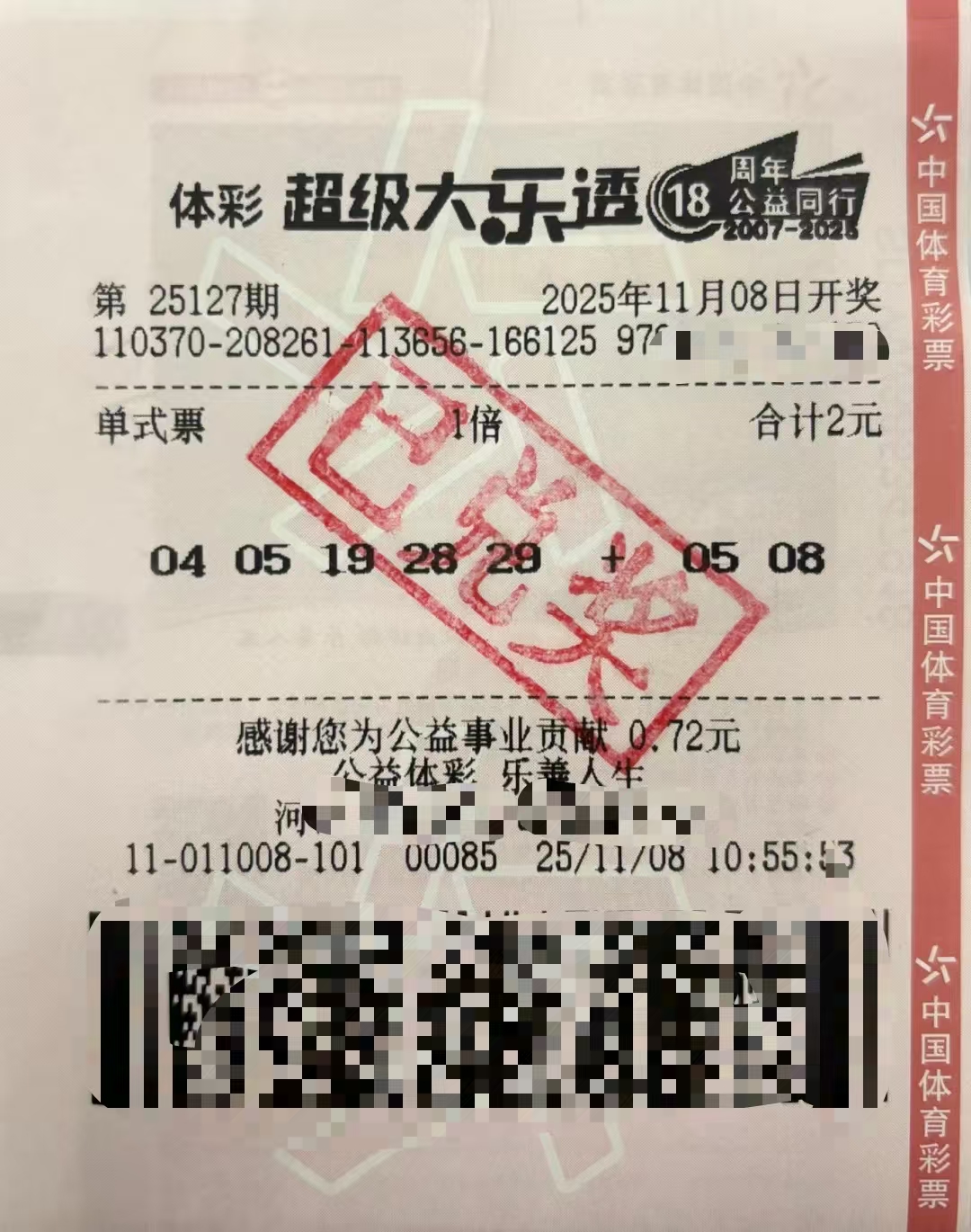 退休老人2元票据中大乐透542万