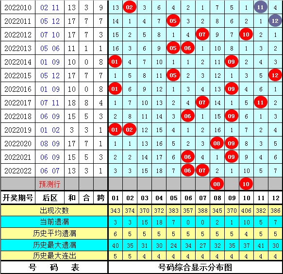 前二区分析【08-14】:该区上周星期六断区,上期开出1个奖号,最近9周星期六与最近9期该区都开出7个奖号,落号相对较少,都出现了4次断区现象,另外二区奖号012路比都为1:2:4,奇偶比都为1:6,本期二区注意号码11、12,胆码参考12。