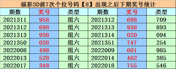 个位分析:上期个位开出奖号8,个位历史上号码8已开出760次,最近100期个位号码开出8次,上期号码遗漏11期出现。
