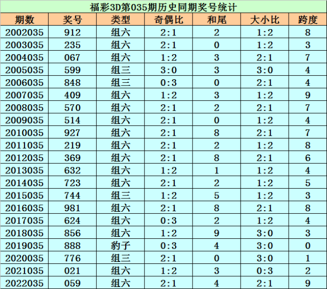 开奖回顾:福彩3D第2022035期开出奖号为059。