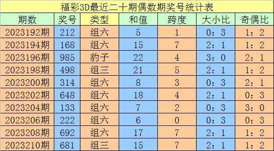 上期回顾:福利彩票3D第2023211期开出奖号612。奖号类型:组六,大小形态:大小小,奇偶形态:偶奇偶。