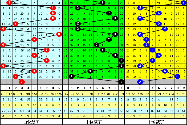 直选定位:上期百位开出2路号码:2,本期百位注意0路号码:3;