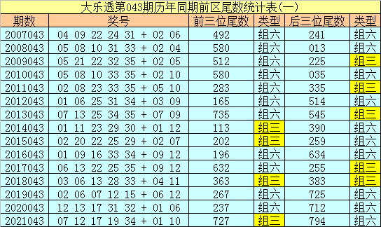 红月大乐透第22043期奖号分析: