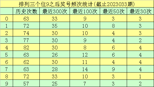 第一位杀号:上期第一位奖号为6,第一位奖号6历史上出现654次,前100次该位开出奖号6之后,下期号码0-9出现次数从高到底分别为:号码3→14次,2、6→13次,0、9→10次,4、5→9次,7、8→8次,1→6次。
