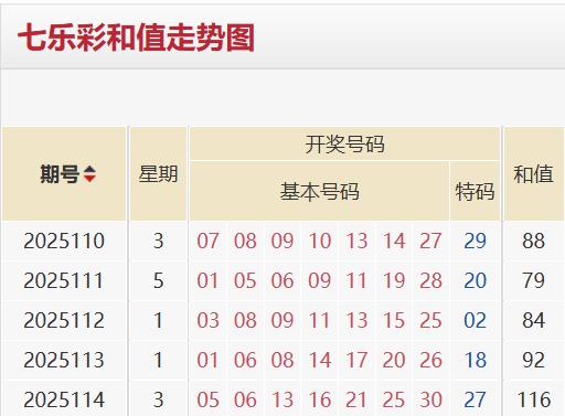 近五期七乐彩开奖号码和值依次为88→79→84→92→116。周期和值均值为92。周期和值振幅为37,周期和值修正振幅为26。基于动态平衡干预以及波动趋势衡量,本期开奖和值推测区间为66-118。基于风险对冲策略,本期开奖和值区间缩水为66-118。