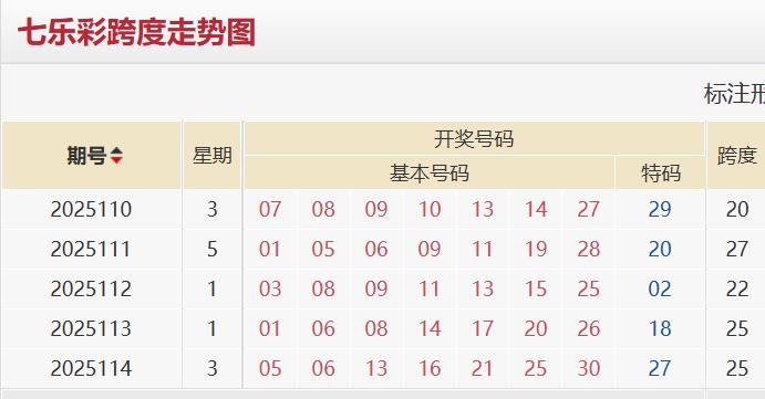 近五期七乐彩开奖号码跨度依次为20→27→22→25→25。周期跨度均值为24。周期跨度振幅为7。周期修正跨度振幅为5。基于动态平衡干预以及波动趋势衡量,本期开奖跨度推测区间为19-29。基于风险对冲策略,本期开奖跨度区间缩水为21-27。