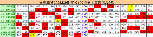 直选号码109历史上开出了9次,其下期分别开出奖号:875、911、416、420、855、426、870、535。