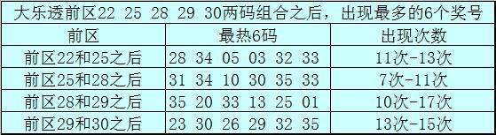 前区两码22和25和之后表现最热的6个号码为:28、34、05、03、32、33;