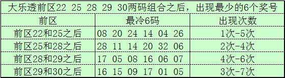 前区两码22和25开出之后,表现最冷的6个号码为:08、20、24、14、04、26;