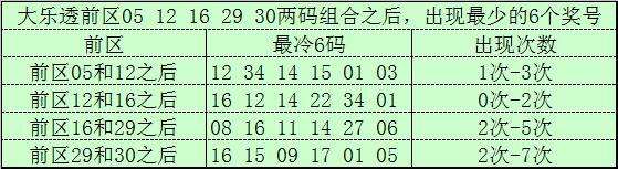 前区冷码统计:大乐透第24040期前区奖号为:05、12、16、29、30,截止第24040期历史上大乐透已经开出了2556期奖号了,在连续两码奖号中: