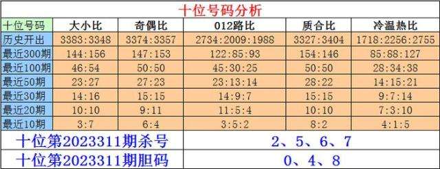 近期百位大号表现较冷,目前连续走冷2期,本期重点关注大号回补;该位奇号明显较热,目前仅轮空一期,本期预计再出奇号。百位本期杀号:2379,胆码关注:456。
