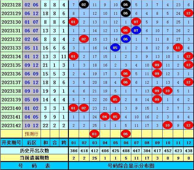 前区第一位:在历史第143期同期开奖中分布范围在01-10区段,平均值为5。6,奇偶比为7:7,目前奇数号码遗漏了1年,今年第143期注意奇数号码回补,关注号码03。