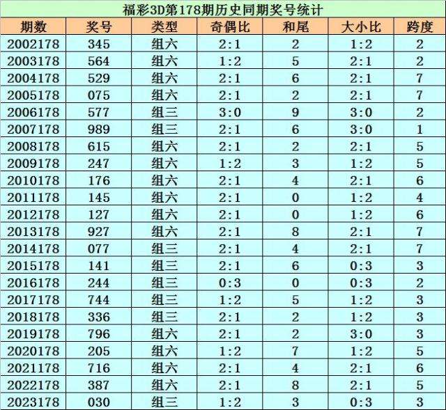 福彩3D历年第178期同期奖号为:345 564 529 075 577 989 615 247 176 145 127 927 077 141 244 744 336 796 205 716 387 030。