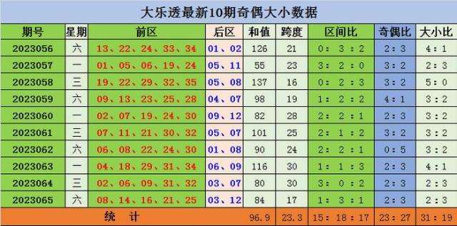 奇偶分析:上期奇偶比为2:3。前区最近5期奇偶比为3:2 0:5 2:3 2:3 2:3其中,偶数号码热出,近10期奇偶比23:27,本期预计奇偶比3:2。