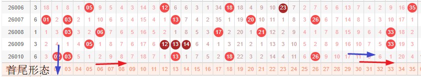 如图所示:首尾制约平衡组范围依次为:缩推推,缩推? 本期形态范围优先选择红色右推首尾。由于上期号码处在首尾换4然后中间右推本期交换首尾移动空间连续分割形成间隔1正在重复走势预计本期继续形成走势,本期宜采取继续左推走势常规起号,或体现间隔1和重号走势。