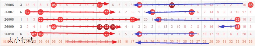 如图所示:体现的是3个局部走势的发展周期,圆圈为密集处的填空,本期定性为新局部走势第3期,修饰真实空间,主力填空第1期。蛋跨17-27,真实空间3-13,蛋跨预估0枚或者2枚。3区要求不低于2枚。代表要么类122 要么类302区间,大小3枚布局。