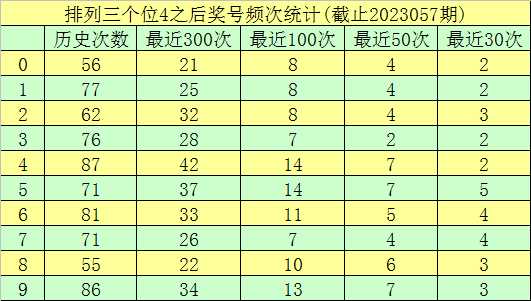 第三位杀号:第三位上期出现奖号4,该位历史上奖号4已开出了723次,最近100次第三位开出4时,下期号码0-9分别落号:号码4、5→14次,9→13次,6→11次,8→10次,0、1、2→8次,3、7→7次。