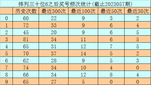 第二位杀号:第二位上期开出奖号为6,该位历史上奖号6开出了661次,最近100次第二位奖号出现6后,下期落号0-9次数从高到低分别为:号码5→14次,4、8→12次,3→11次,7→10次,0、1、2、6→9次,9→5次。