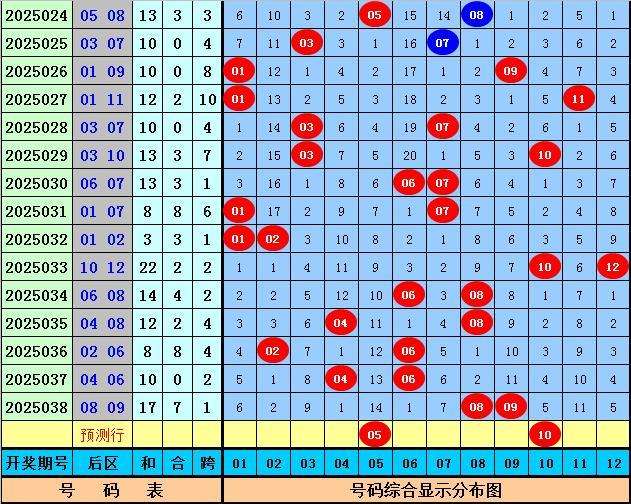 后区分析:上期后区开出号码08和09,在最近15期开奖中,后区奖号奇偶比为15:15,大小比为14:16,本期后区关注一大一小组合和一奇一偶组合,精选两码05和10。